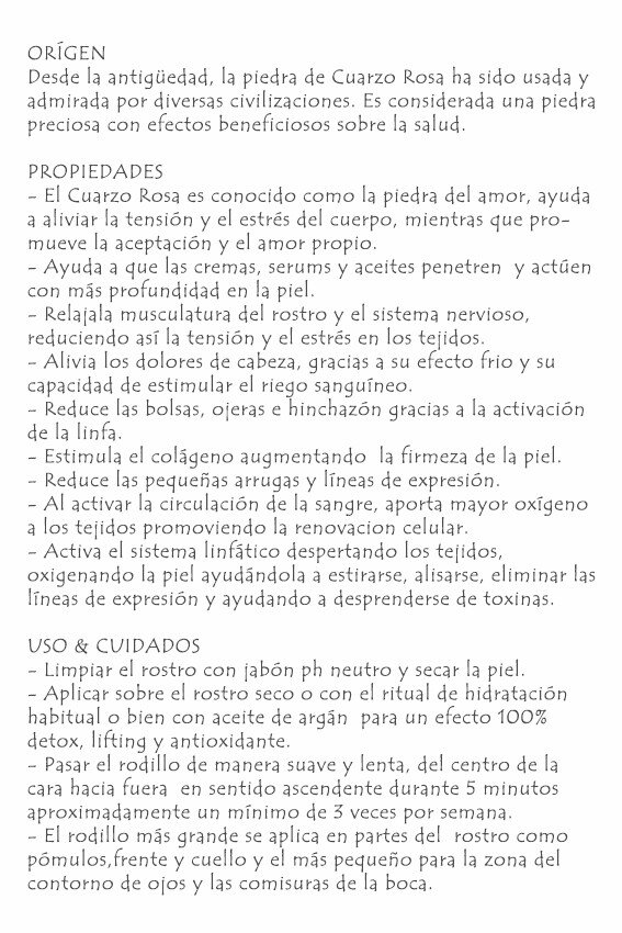 Nuestro rodillo está hecho con auténtica piedra de Cuarzo Rosa 100% pura tanto en los rodillos como en el mango para darle a tu piel el mejor tratamiento.
